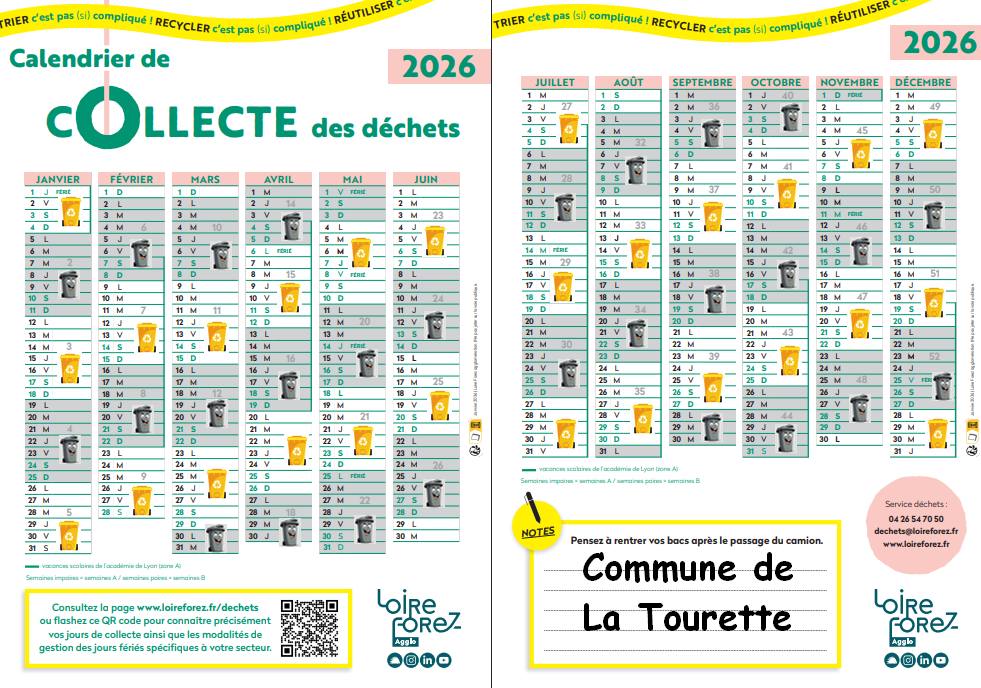 Lien Calendrier Collecte Déchets sur la commune de La Tourette 2026